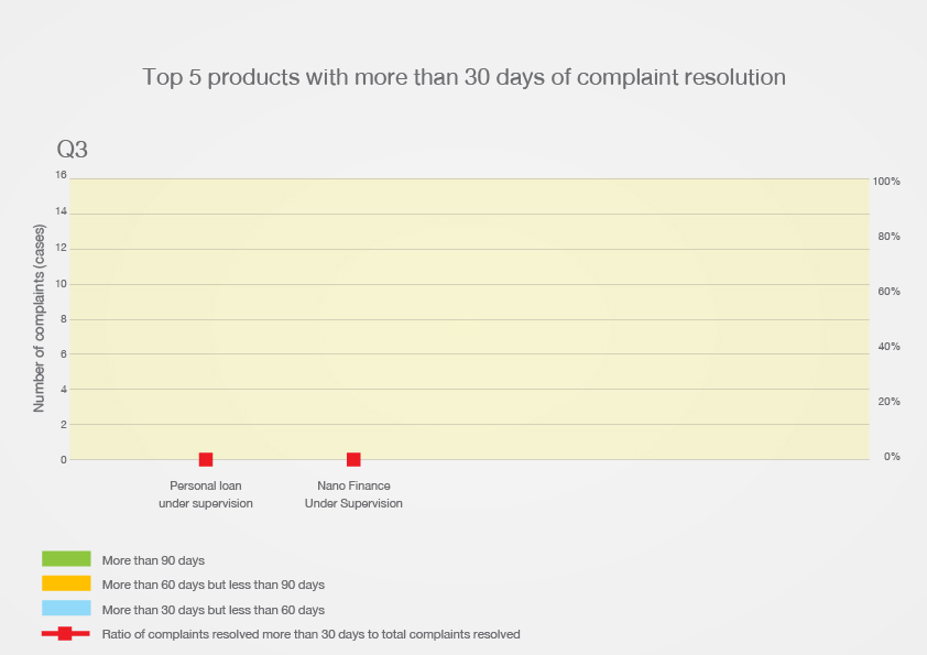 4. ข้อมูลเรื่องร้องเรียนสูงสุด 5 ผลิตภัณฑ์แรก จำแนกตามระยะเวลายุติเรื่องเที่เกิน 30 วัน